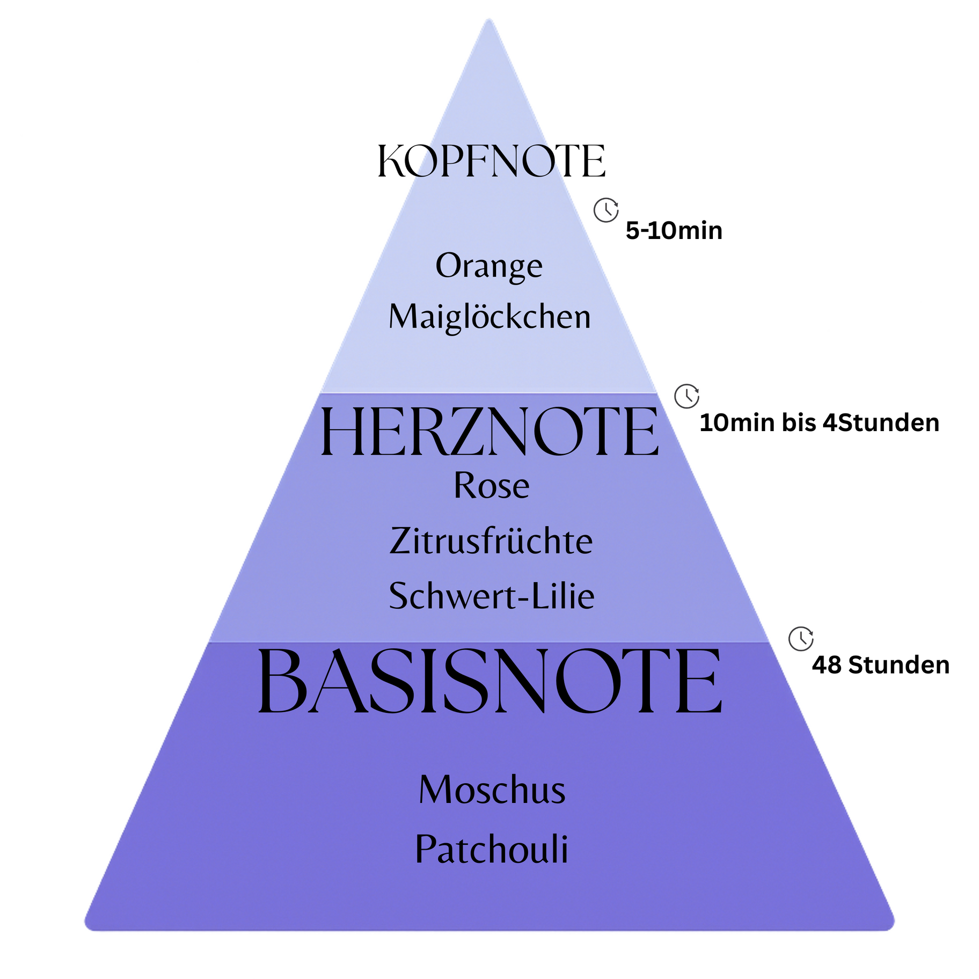 Iris, Rose und Zitrusnoten verbinden sich zu einem Herz aus natürlicher Schönheit. Diese Kombination wirkt edel, leicht pudrig und schenkt dem Duft eine inspirierende Frische mit floraler Sanftheit.