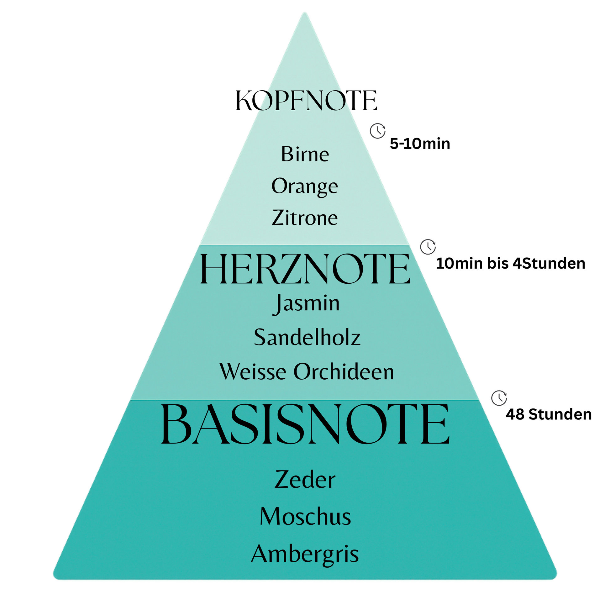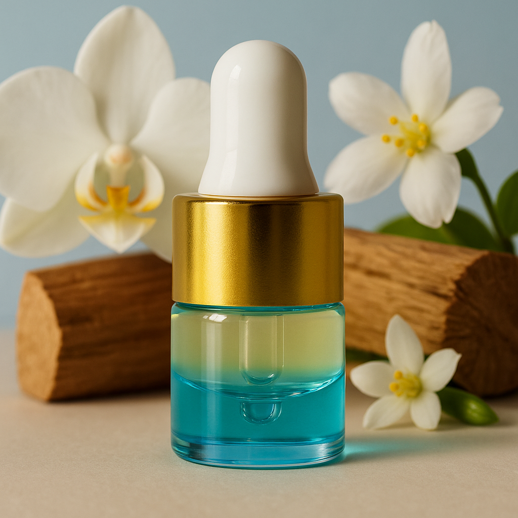 Weiße Orchidee, Sandelholz und Jasmin bilden eine harmonische, cremig-blumige Mitte. Die Kombination wirkt beruhigend und zugleich luxuriös – wie ein tiefer Atemzug in einem botanischen Garten.