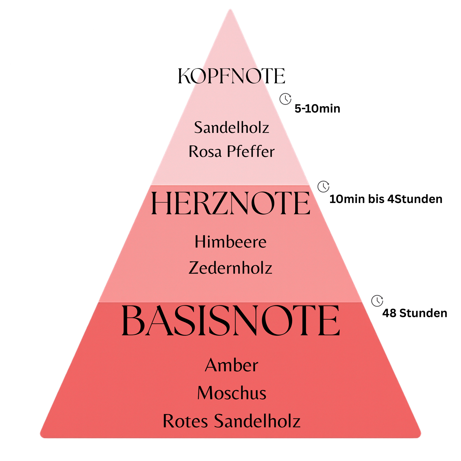 In der Herznote entfaltet sich die Süße der Himbeere, perfekt eingebettet in die Tiefe von Zedernholz. Ein aromatisches Zentrum, das Geborgenheit und Stil vereint.